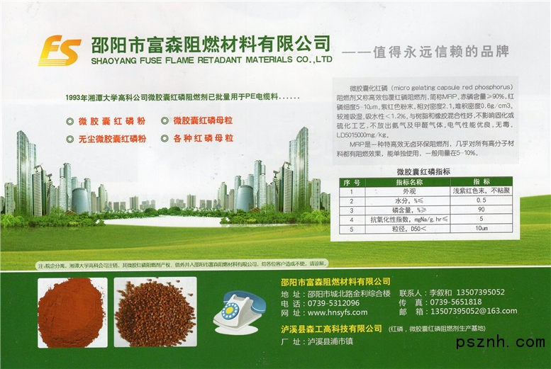 | 經(jīng)營(yíng)范圍: | 紅磷系列阻燃劑及化工產(chǎn)品;聚乙烯阻燃管生產(chǎn)銷售。(依法須經(jīng)批準(zhǔn)的項(xiàng)目,經(jīng)相關(guān)部門批準(zhǔn)后方可開展經(jīng)營(yíng)活動(dòng)) | ||