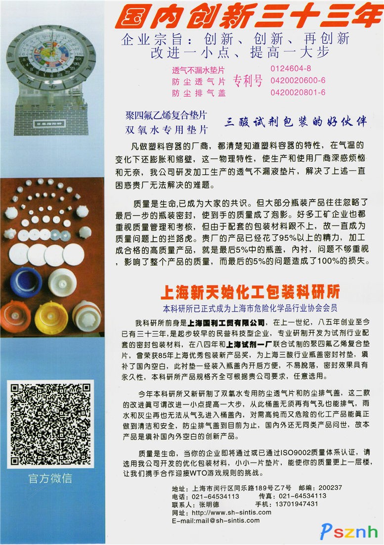 | 公司名稱: | 上海新天始化工包裝科研所 | ||