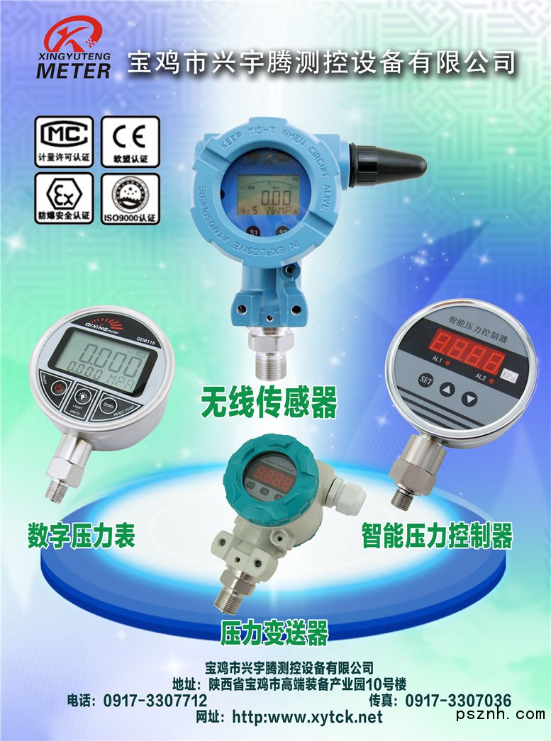 壓力變送器_壓力控制器_ 數字壓力表_壓力溫度變送模塊 多國儀表展-寶雞市興宇騰測控設備有限公司點擊:6457 查看原圖![]() ![]() ![]() 寶雞市興宇騰測控設備有限公司