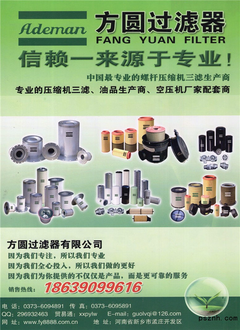 輝縣市方圓過濾器有限公司 濾清器 螺桿式 滑片式 噴油壓縮機 真空泵用油氣分離濾芯 過濾器 油濾器 東莞空壓機展點擊:1460 查看原圖![]() ![]() ![]() 聯系我們