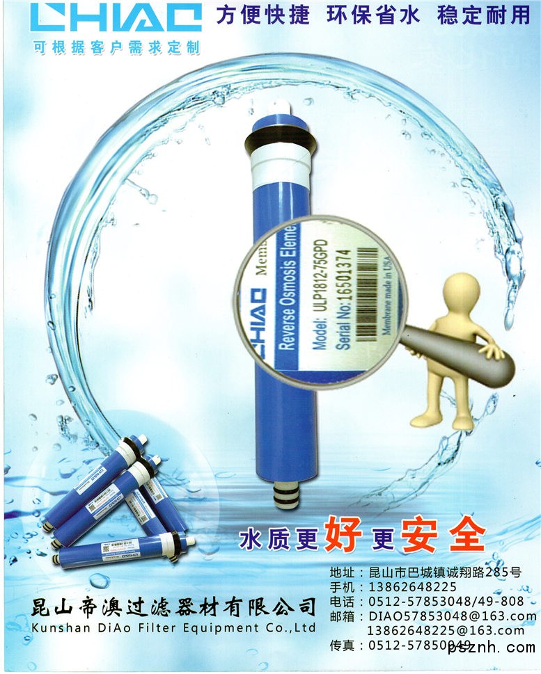 昆山帝澳過濾器材有限公司 反滲透RO膜點擊:357 查看原圖![]() ![]() ![]() 地址:昆山市巴城鎮誠翔路285號2號廠房
