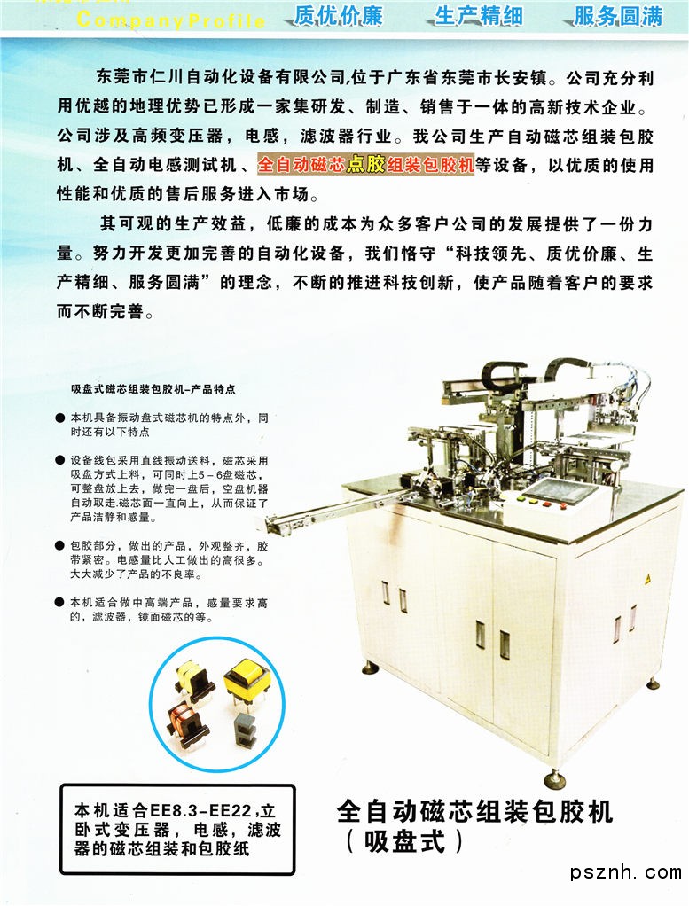 東莞市仁川自動化設備有限公司 全自動磁芯包膠機 半自動膠布機 全自動測試機點擊:487 查看原圖![]() ![]() ![]() 公司地址: