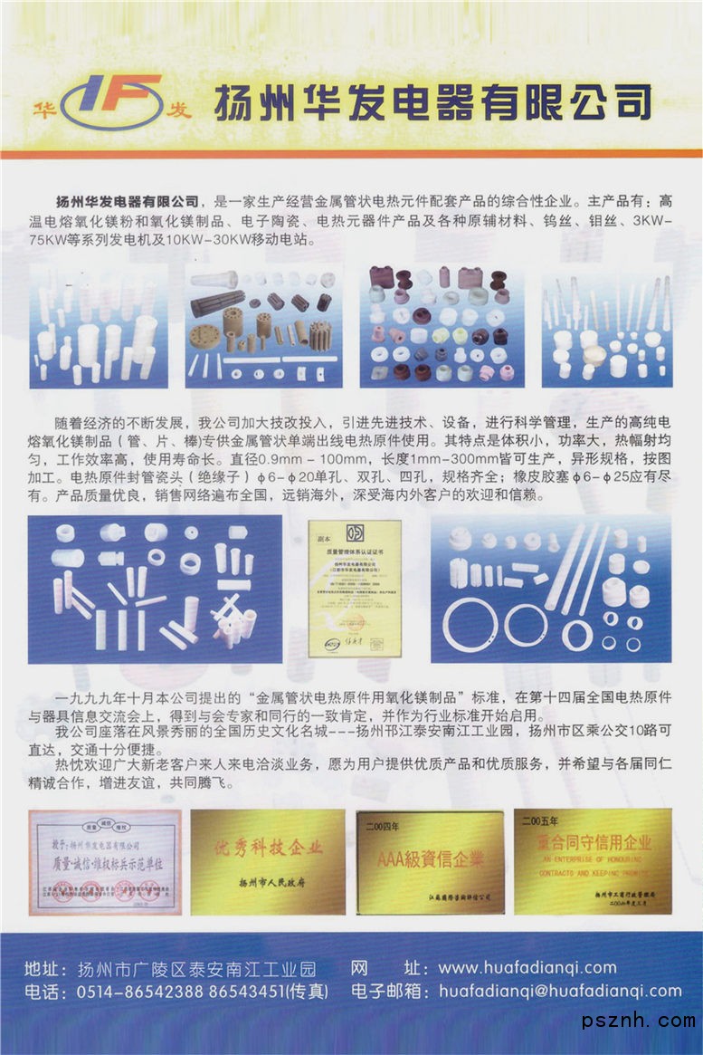 揚(yáng)州華發(fā)電器有限公司 陶瓷制品 鎢鉬制品 電熱元器件 塑料制品點(diǎn)擊:642 查看原圖![]() ![]() ![]() 揚(yáng)州華發(fā)電器有限公司