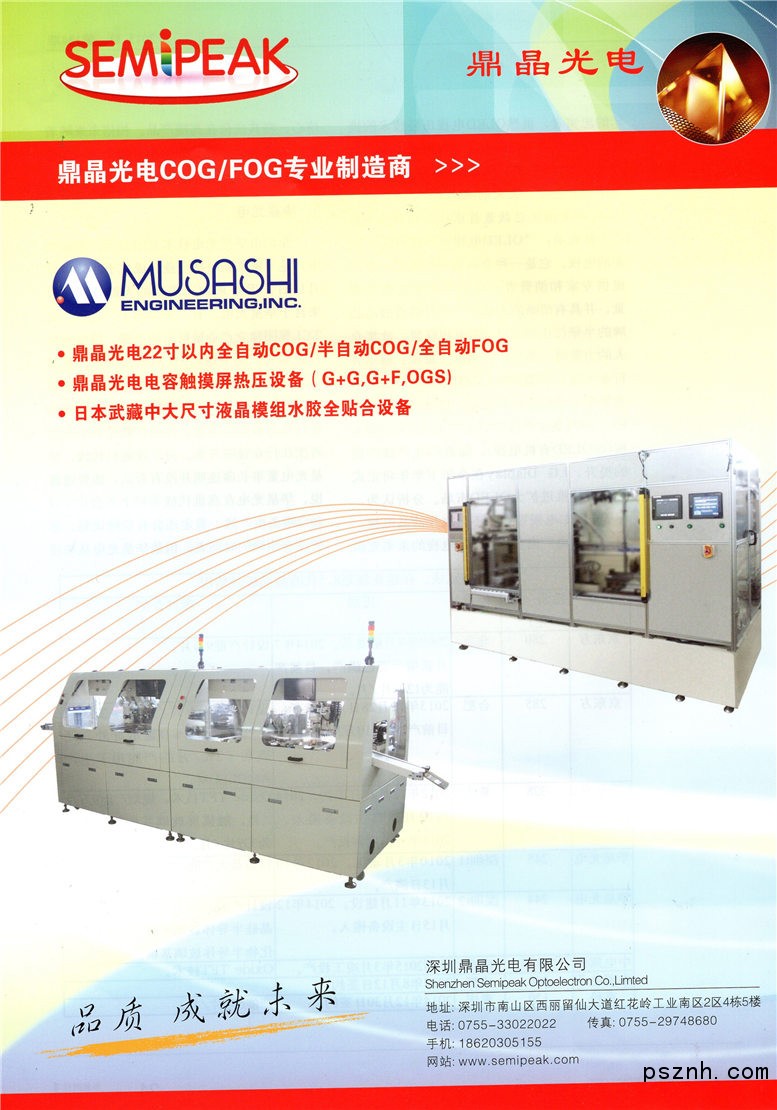深圳鼎晶光電有限公司 COG邦定機(jī) 半自動(dòng)COG設(shè)備 自動(dòng)對(duì)位預(yù)壓機(jī)點(diǎn)擊:581 查看原圖![]() ![]() ![]() 公司地址:中國(guó)廣東深圳市深圳市寶安區(qū)西鄉(xiāng)街道桃花源科技創(chuàng)新園b棟 518103