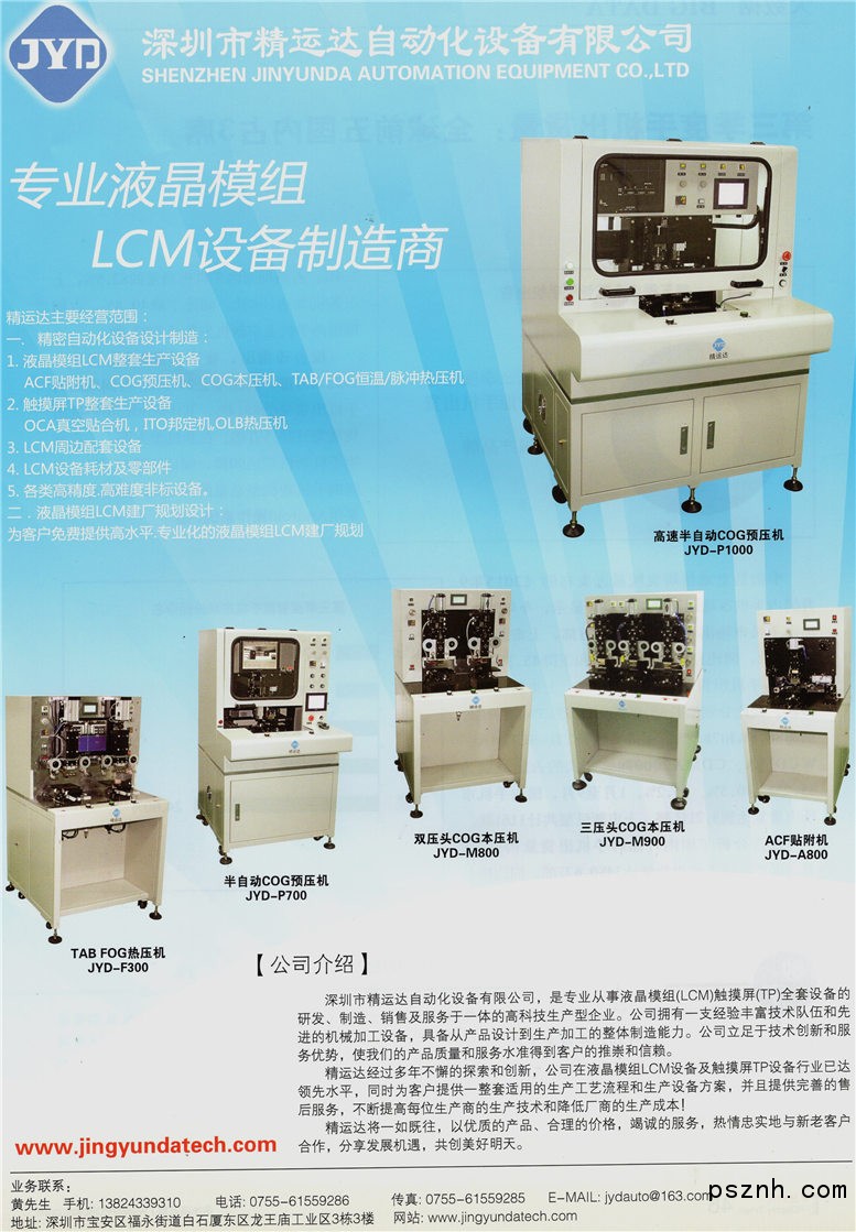 全自動(dòng)LCD上料機(jī)_全自動(dòng)LCD端子清洗機(jī)_全自動(dòng)COG邦定機(jī)-深圳市精運(yùn)達(dá)自動(dòng)化設(shè)備有限公司點(diǎn)擊:789 查看原圖![]() ![]() ![]() 地址:深圳市寶安區(qū)福永街道白石廈東區(qū)美華路69號(hào)