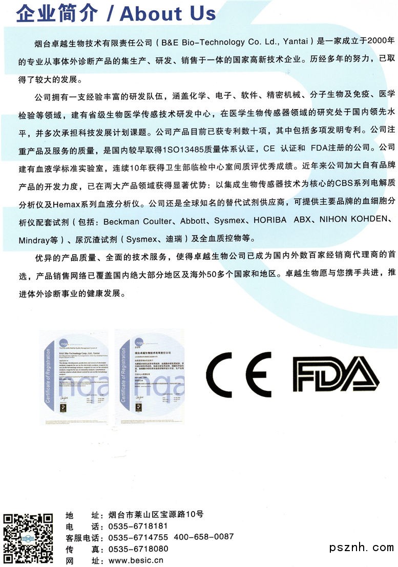 山東卓越生物技術股份有限公司 血細胞分析試劑 全血質控物 SYSMEX尿沉渣試劑點擊:797 查看原圖![]() ![]() ![]() 客戶服務電話 4006 580087