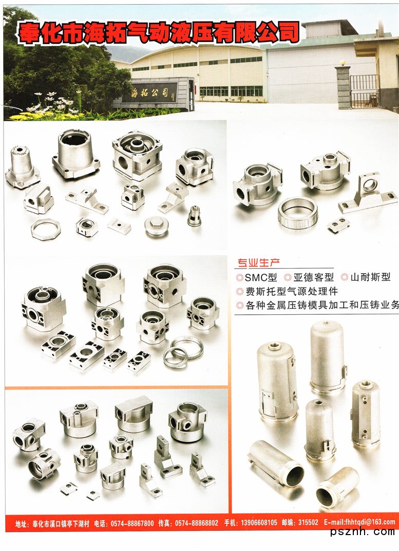 | 經營范圍: | 一般經營項目:氣動元件、液壓元件、塑料制品、金屬壓鑄、五金件、模具制造、加工。 | ||
