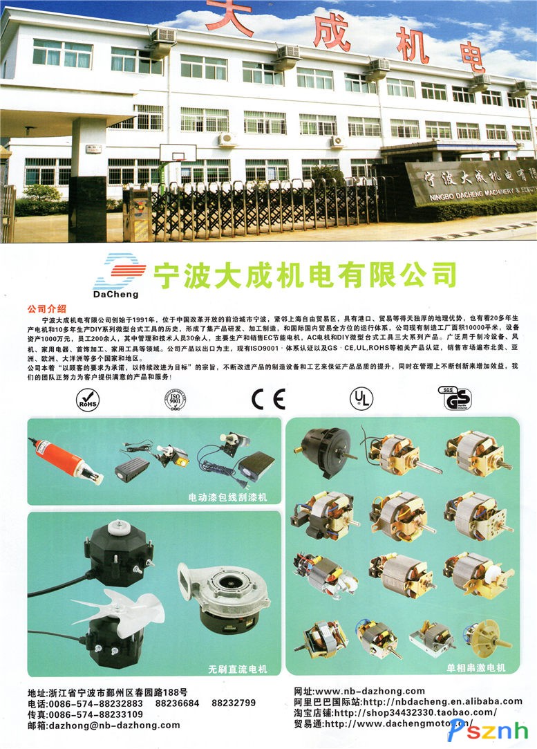 感應電機_電動工具_串激電機_單相罩極電機_永磁直流電-寧波大成機電有限公司點擊:928 查看原圖![]() ![]() ![]() 公司名稱:寧波大成機電有限公司