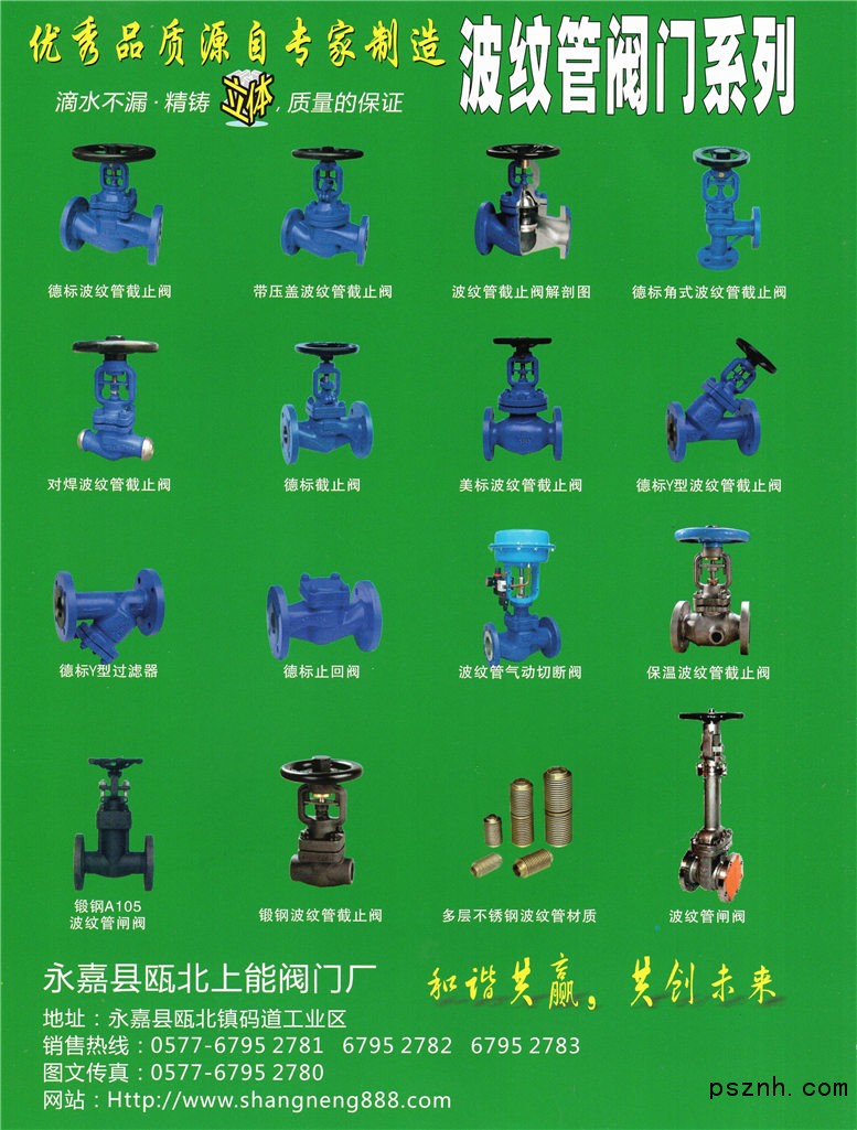 永嘉縣甌北鎮(zhèn)上能閥門廠 德標波紋管截止閥 美標波紋管截止閥 Y型波紋管截止閥點擊:847 查看原圖![]() ![]() ![]() 公司名稱: 永嘉縣甌北鎮(zhèn)上能閥門廠