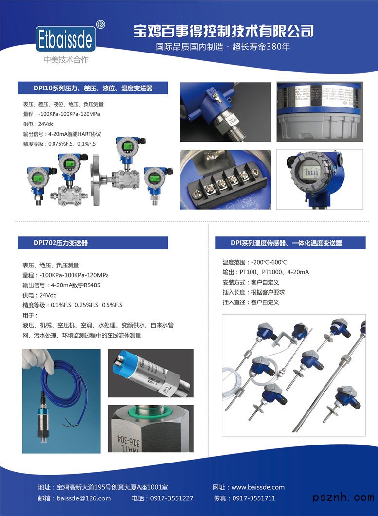 儀器儀表_溫度傳感器_壓力變送器_液位變送器_數字壓力表-寶雞百事得控制技術有限公司點擊:6083 查看原圖![]() ![]() ![]() 中國 陜西 寶雞百事得控制技術有限公司
