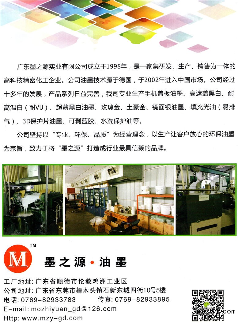 廣東墨之源實業有限公司 GB系列 手機鏡片玻璃油墨 JD系列 玻璃油墨 SJ系列 透明色漿點擊:1012 查看原圖![]() ![]() ![]() 聯系人:彭先生(189-2911-5796)