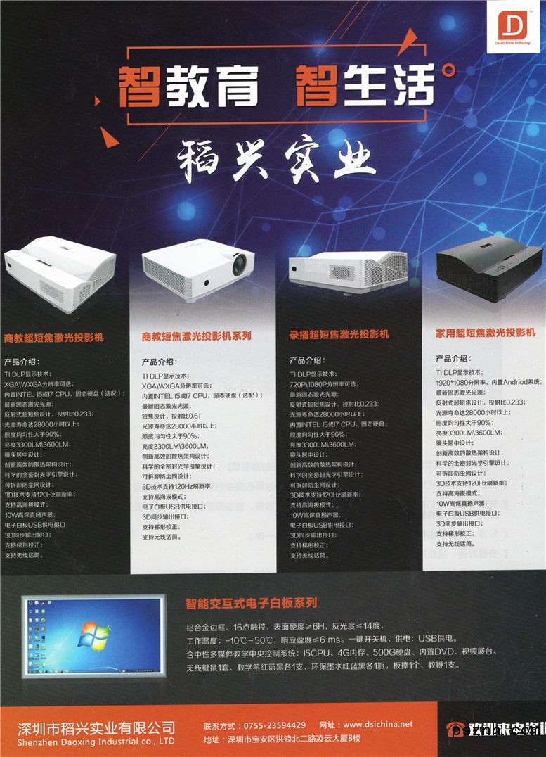 深圳市稻興實業有限公司 激光電視 激光商教投影機 激光工程投影機點擊:561 查看原圖![]() ![]() ![]() 深圳市稻興實業有限公司