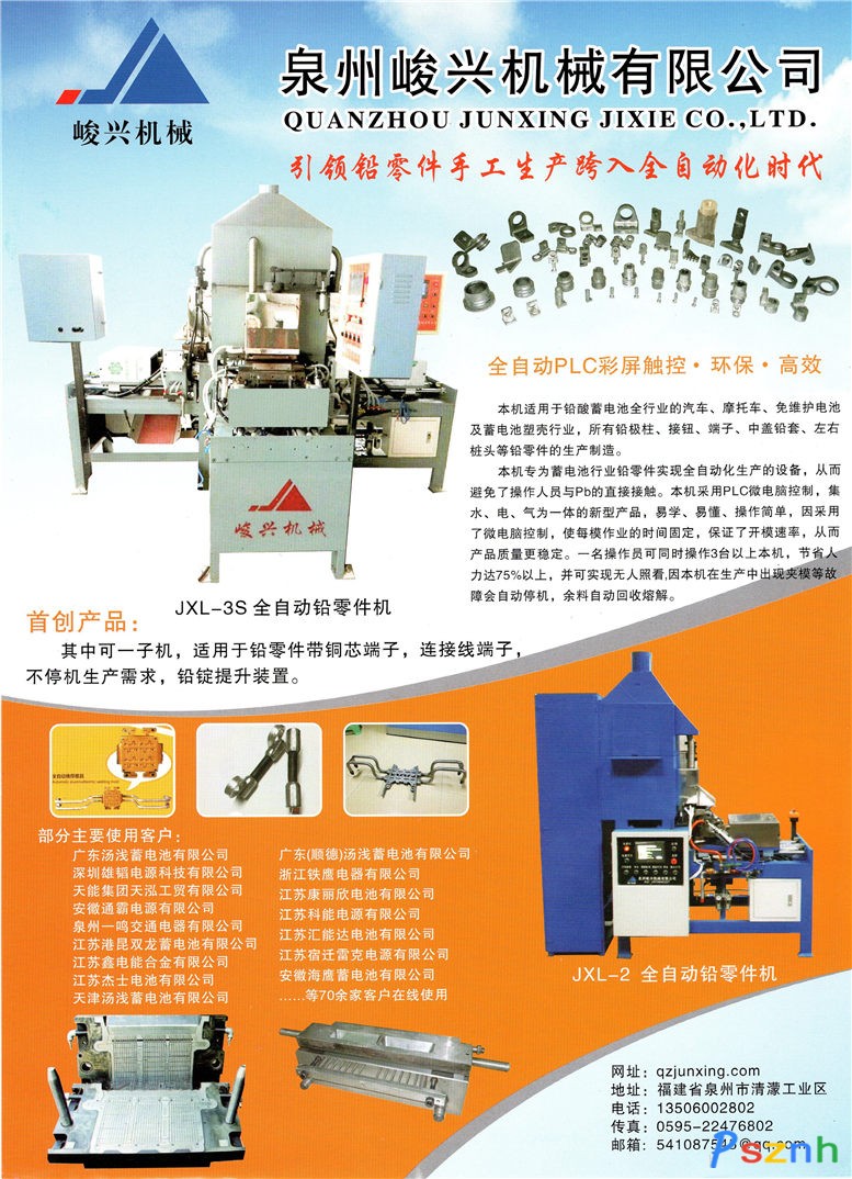 泉州峻興機械有限公司_鉛酸蓄電池_全自動鉛零件機_全自動連鑄鉛條機點擊:1612 查看原圖![]() ![]() ![]() 聯系人:劉水生(總經理)