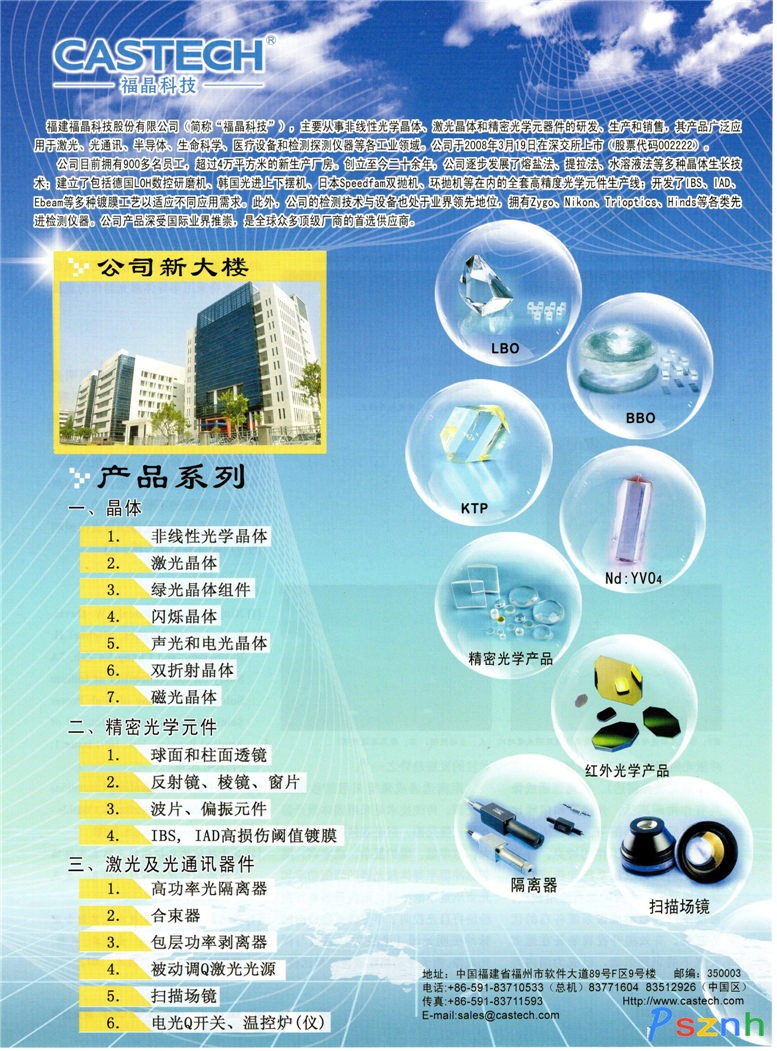 | 經(jīng)營范圍: | 光學(xué)晶體、晶體材料、激光器件的制造及其技術(shù)咨詢、技術(shù)服務(wù)。(依法須經(jīng)批準(zhǔn)的項(xiàng)目,經(jīng)相關(guān)部門批準(zhǔn)后方可開展經(jīng)營活動(dòng)) | ||