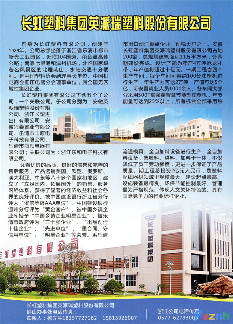 陳小姐:0577-62799035 郵箱:sherry@chs.com.cn 生產基地:長虹塑料集團英派瑞塑料股份有限公司