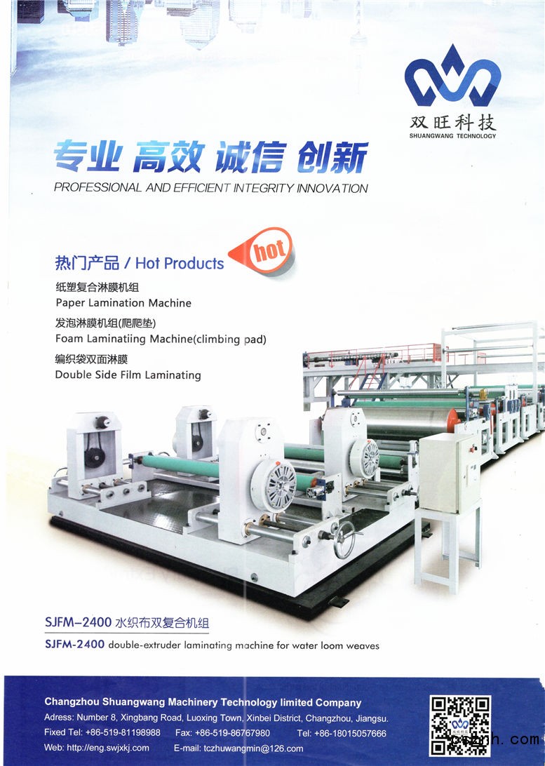 常州市雙旺機械科技有限公司 淋膜復合機組_熱熔膠涂布機組_紙塑復合淋膜機組點擊:326 查看原圖![]() ![]() ![]() 聯系人:朱先生:18015057666 吳先生:18015026980
