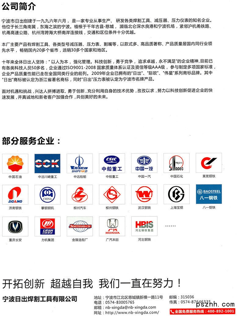 | 公司名稱: | 寧波市江北興達焊割減壓儀表廠 | ||