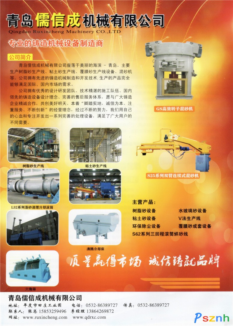 青島儒信成機械有限公司 樹脂砂生產線 粘土砂生產線 混砂機