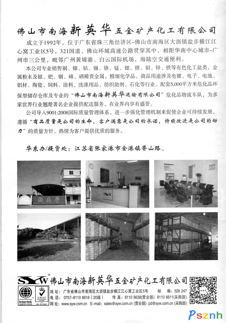 | 公司名稱: | 佛山市南海新英華五金礦產(chǎn)化工有限公司 | ||