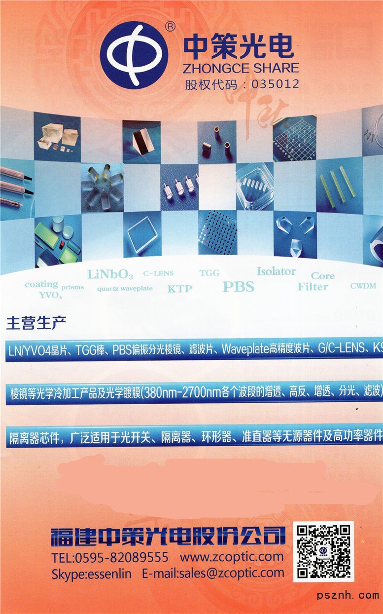 福建中策光電股份公司 光學(xué)光通信晶體元器件點(diǎn)擊:967 查看原圖![]() ![]() ![]() 福建中策光電科技有限公司