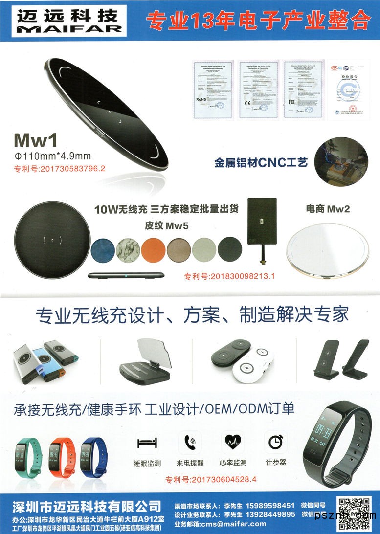 深圳市邁遠科技有限公司 無線充電器 智能健康手環點擊:567 查看原圖![]() ![]() ![]() 地址:深圳市龍華新區民治大道牛欄前大廈A912室