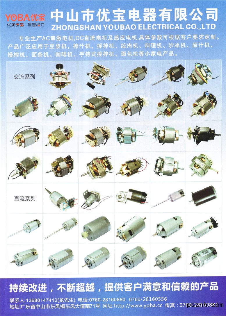 中山市優寶電器有限公司 交流馬達 直流電機點擊:714 查看原圖![]() ![]() ![]() 官網: https//youbao88.b2b.hc360.com 地址:中國廣東省中山市 廣東省中山市東鳳鎮東鳳大道南71號