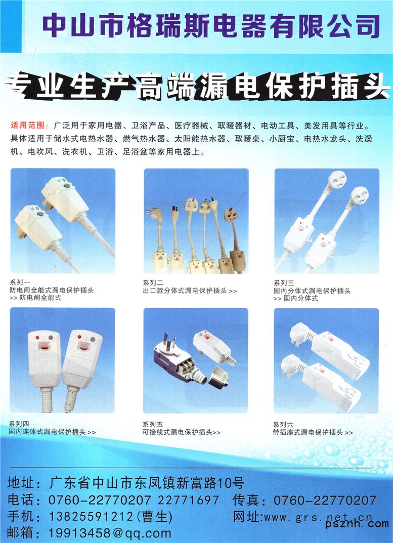 中山市格瑞斯電器有限公司 漏電保護(hù)插頭點(diǎn)擊:841 查看原圖![]() ![]() ![]() 公司地址:廣東省中山市東鳳鎮(zhèn)新富路10號(hào)
