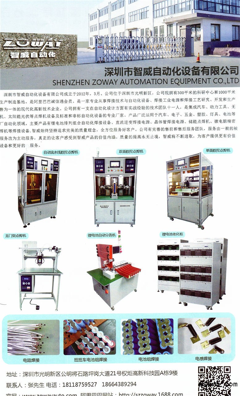 深圳市智威自動化設(shè)備有限公司 鋰電池自動分選機 _動力電池組PACK自動點焊機_自動貼青稞機點擊:606 查看原圖![]() ![]() ![]() 深圳市智威自動化設(shè)備有限公司