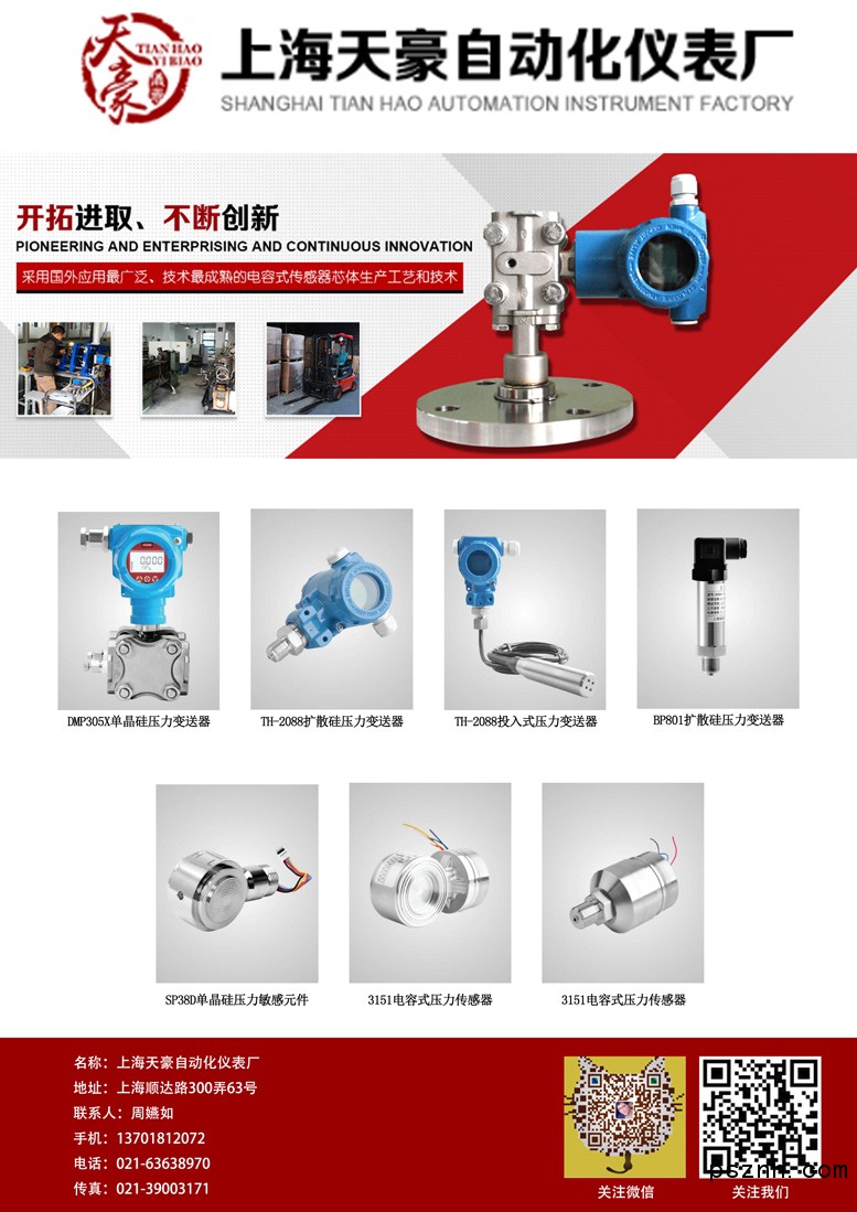 壓力傳感器芯體_電容式變送器_電容式壓力/差壓變送器_平法蘭變送器_插入式變送器-上海天豪自動化儀表廠點擊:4983 查看原圖![]() ![]() ![]() 名稱:上海周衍自動化儀表有限公司
