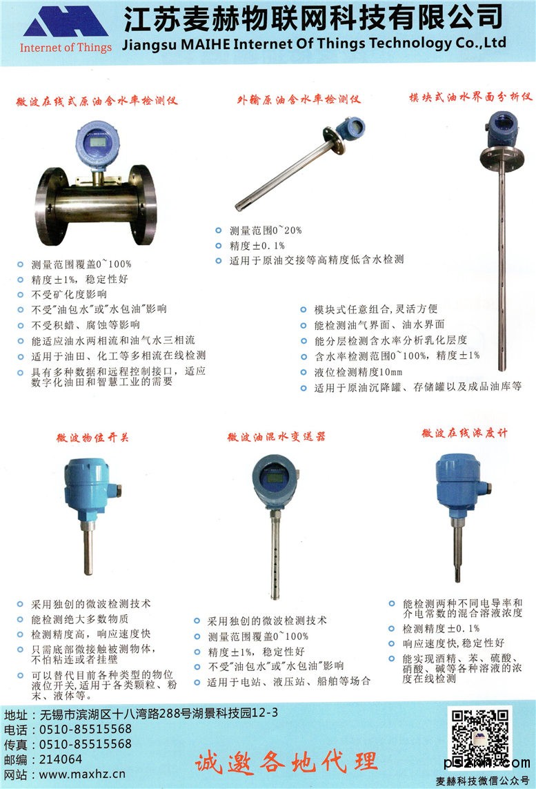 江蘇麥赫物聯(lián)網(wǎng)科技有限公司 在線式原油含水率檢測儀 在線式原油三相流綜合檢測儀 原油沉降罐界面智能分析系統(tǒng)點(diǎn)擊:1098 查看原圖![]() ![]() ![]() 地 址:無錫市十八灣路288號湖景科技園12號樓3單元