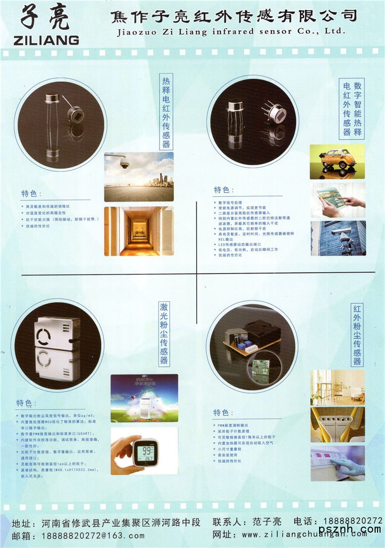 焦作子亮紅外傳感有限公司 熱釋電紅外傳感器_數字智能熱釋電紅外傳感器_激光微型粉塵傳感器點擊:829 查看原圖![]() ![]() ![]() 聯系人:范經理