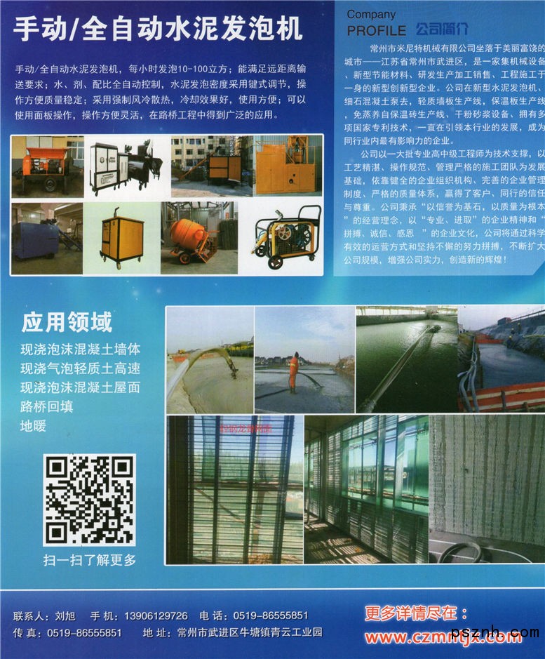 | 經(jīng)營(yíng)范圍: | 普通機(jī)械設(shè)備、水泥發(fā)泡機(jī)、細(xì)石混凝土泵、攪拌機(jī)、輸送機(jī)、切割機(jī)、減速機(jī)制造、加工;水泥發(fā)泡劑、彩色砂漿、水泥保溫板、保溫材料、防水材料、水性涂料、建筑材料、防火門芯板銷售;輕質(zhì)泡沫混凝土工程、建筑防水工程、防腐保溫工程、建筑節(jié)能工程、建筑環(huán)保工程施工;新型建筑節(jié)能保溫材料、墻體材料、裝飾保溫一體板的技術(shù)研發(fā)、技術(shù)轉(zhuǎn)讓、技術(shù)服務(wù)。(依法須經(jīng)批準(zhǔn)的項(xiàng)目,經(jīng)相關(guān)部門批準(zhǔn)后方可開(kāi)展經(jīng)營(yíng)活動(dòng)) | ||