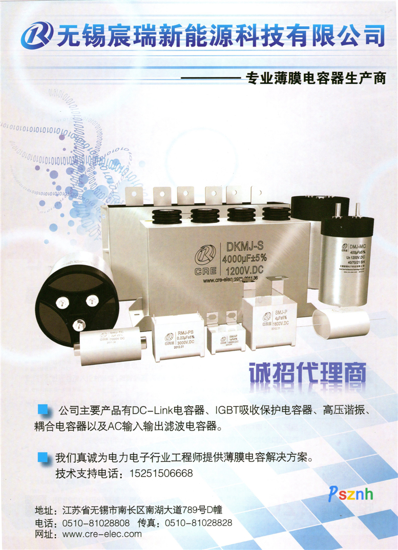 無錫宸瑞新能源科技有限公司 薄膜電容器 電力電子點擊:1375 查看原圖![]() ![]() ![]() 址:無錫市南長區(qū)南湖大道789號D幢