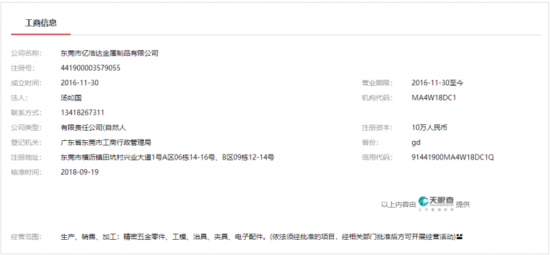 | 登記機關: | 廣東省東莞市工商行政管理局 | 省份: | gd |