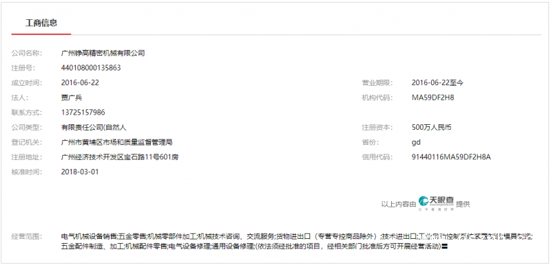 | 公司名稱: | 廣州錚高精密機械有限公司 | ||