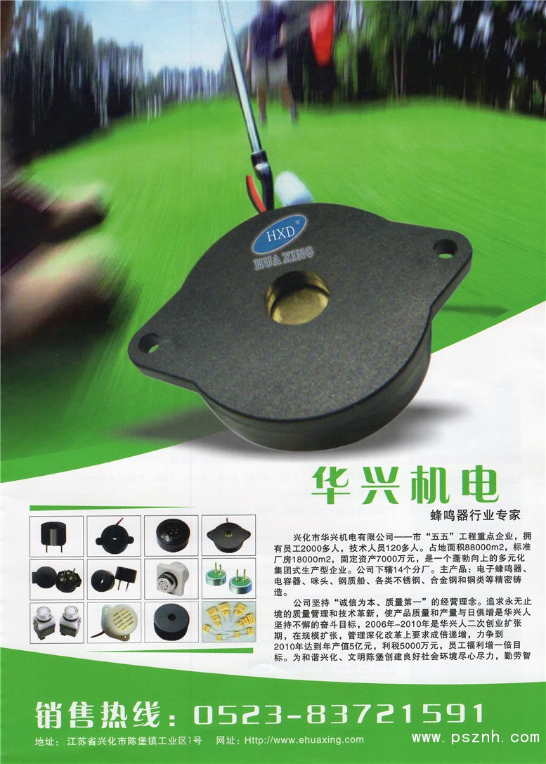 | 經營范圍: | 電子蜂鳴器、駐極體電容及其它電容、壓電陶瓷片、喇叭、報警器、變壓器組裝、銷售,金屬沖壓件制造、加工、銷售,花色工具鉗、電感、電阻、二極管、三極管、發光管、漆包線銷售,道路普通貨物運輸,自營和代理各類商品及技術的進出口業務(國家限定企業經營或禁止進出口的商品和技術除外)。(依法須經批準的項目,經相關部門批準后方可開展經營活動) | ||