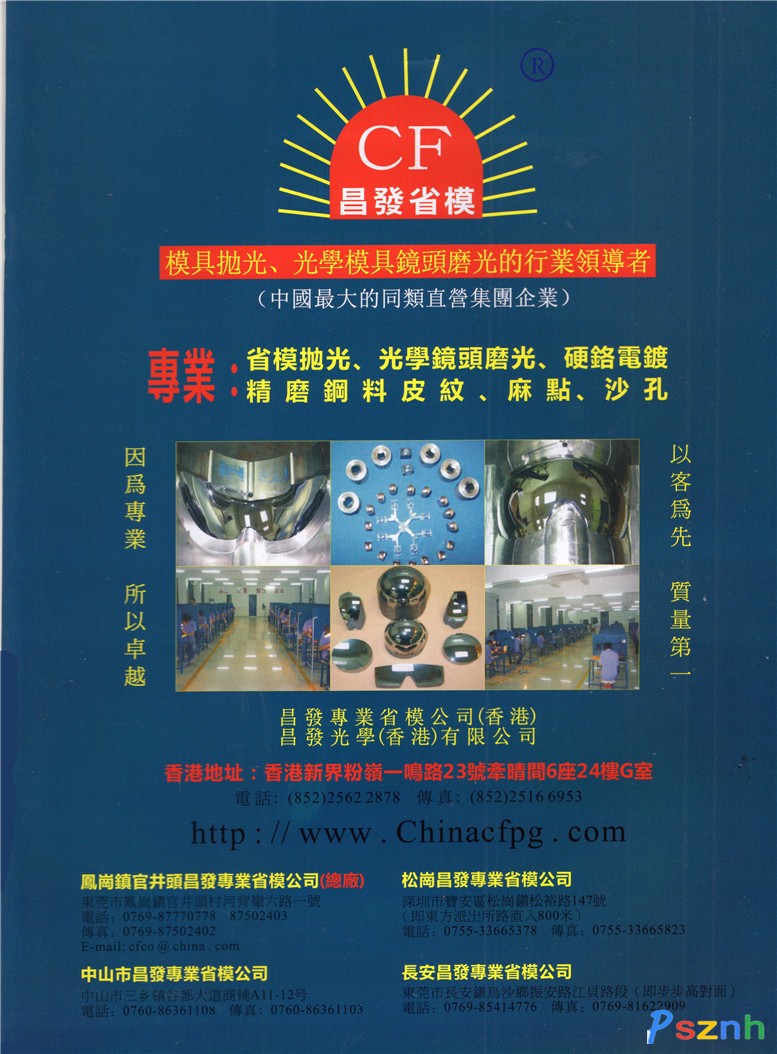 東莞市昌發模具有限公司_模具表面拋光_光學模具鏡頭磨光點擊:1499 查看原圖![]() ![]() ![]() 東莞市昌發模具有限公司(總廠)