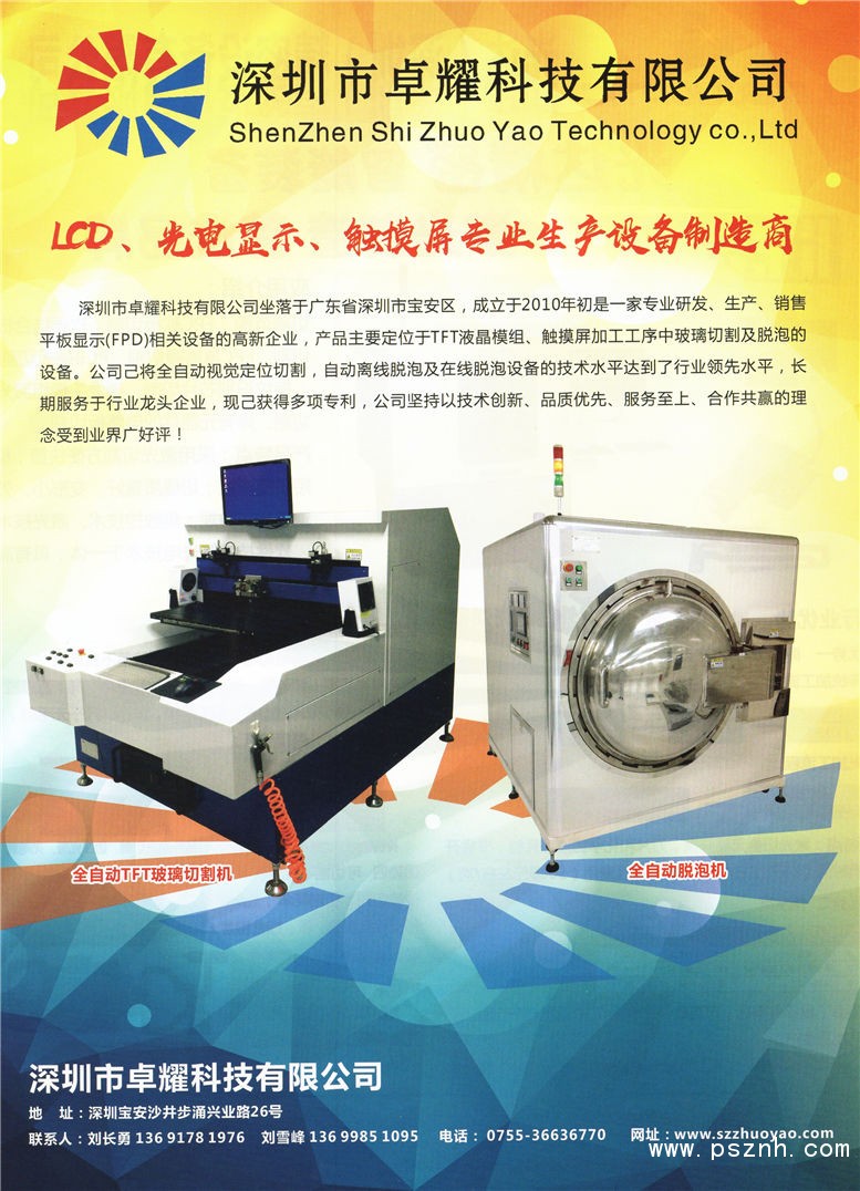 深圳市卓耀科技有限公司 半自動脫泡機 全自動脫泡機 異型玻璃切割機點擊:621 查看原圖![]() ![]() ![]() 地 址: 深圳市寶安區沙井鎮步涌興業路26號