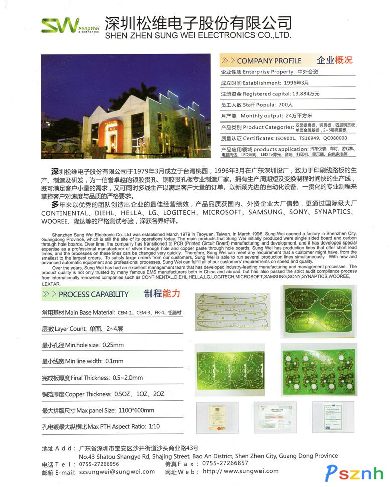 | 公司名稱: | 深圳松維電子股份有限公司 | ||
