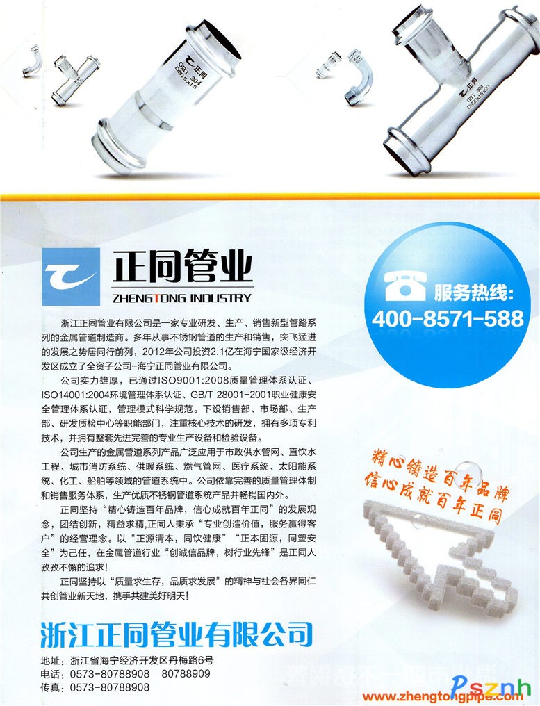 浙江正同管業(yè)有限公司_不銹鋼管_雙卡壓管件_溝槽管件_焊接管件點擊:2363 查看原圖![]() ![]() ![]() 浙江正同管業(yè)有限公司