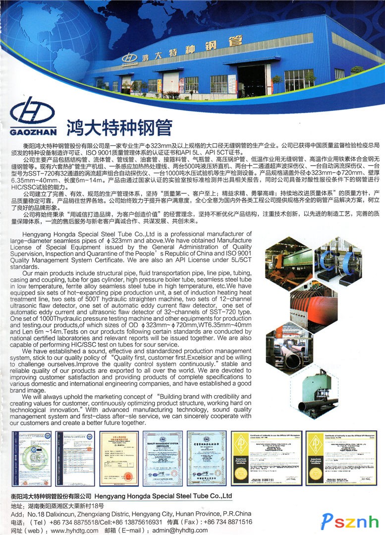 衡陽鴻大特種鋼管股份有限公司_結構管_流體管_管線管_表套管_接箍料管點擊:2423 查看原圖![]() ![]() ![]() 電話:86-0734-8875518 8871616