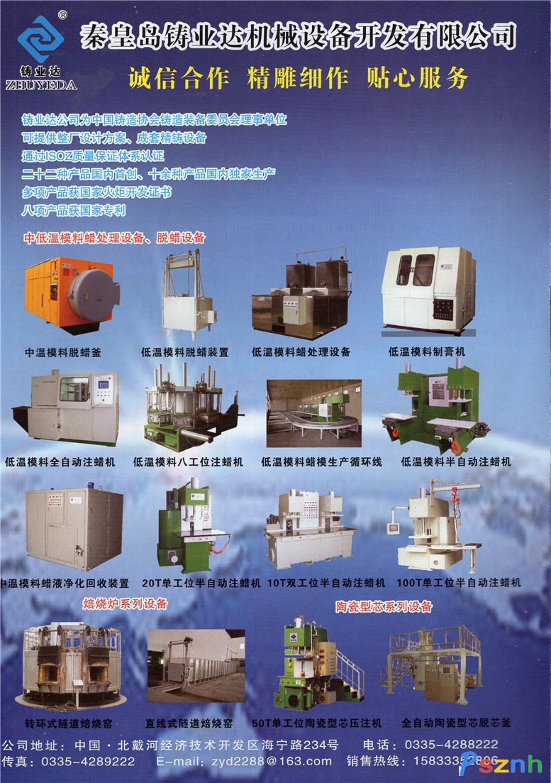 秦皇島鑄業(yè)達機械設備開發(fā)有限公司 鑄造成套設備 硅溶膠工藝設備 玻璃工藝設備 爐窯