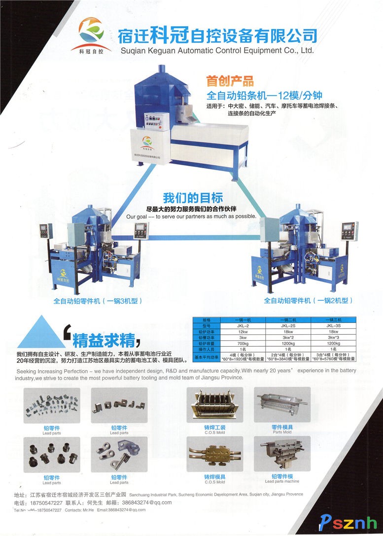 宿遷科冠自控設備有限公司 _鉛零件機_鉛零件_蓄電池設備_鑄焊模具_板柵模具點擊:1570 查看原圖![]() ![]() ![]() 公司名稱: 宿遷科冠自控設備有限公司