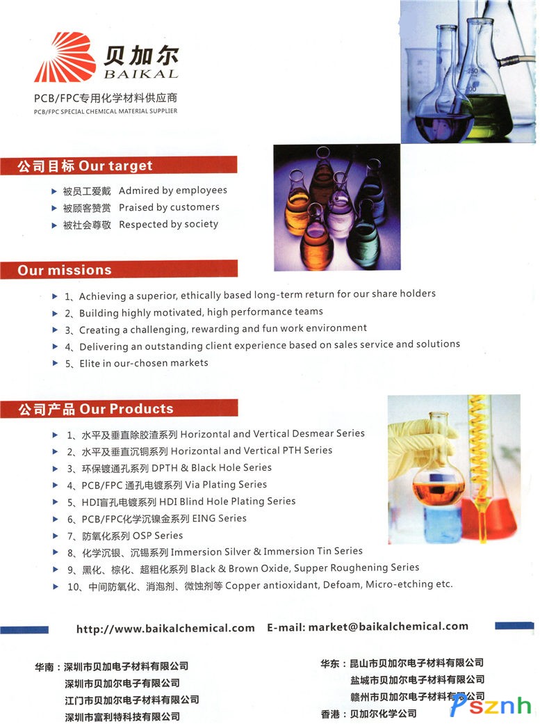 深圳市貝加電子材料有限公司 沉鎳金 內層處理 銅防氧化系列