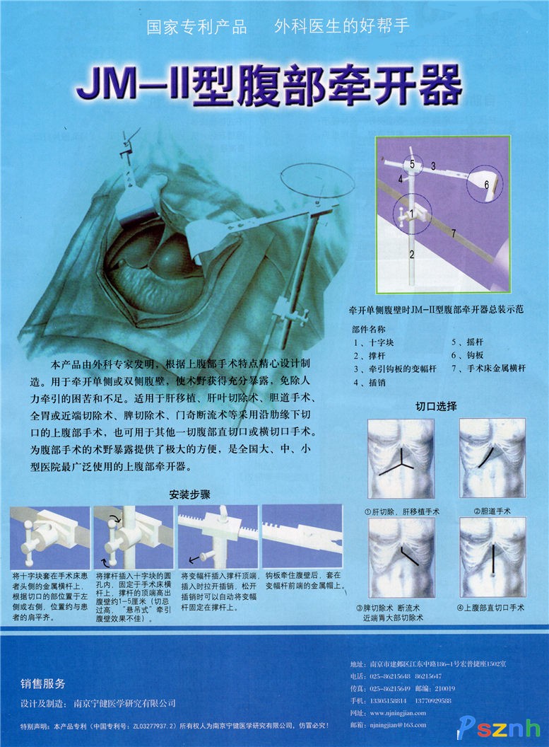 南京寧健醫學研究有限公司 胸腔牽開器 JM型多功能彩頁 JM-III型下腹部牽開器