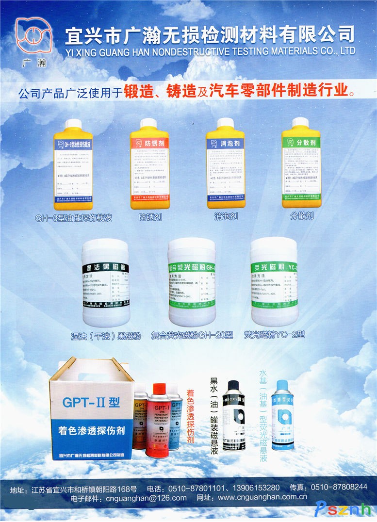 | 公司名稱: | 宜興市廣瀚無損檢測材料有限公司 | ||