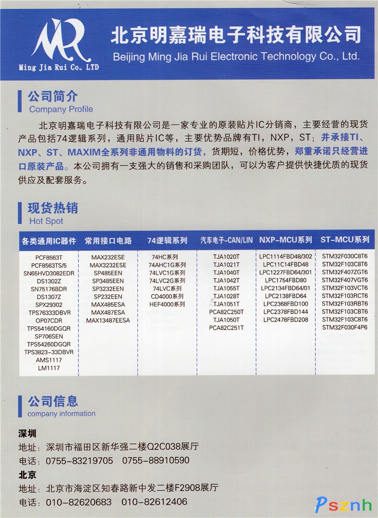北京明嘉瑞電子科技有限公司 工業/工業品-電子/IC/集成電路點擊:529 查看原圖![]() ![]() ![]() 公司主頁: www.mingjiarui.com