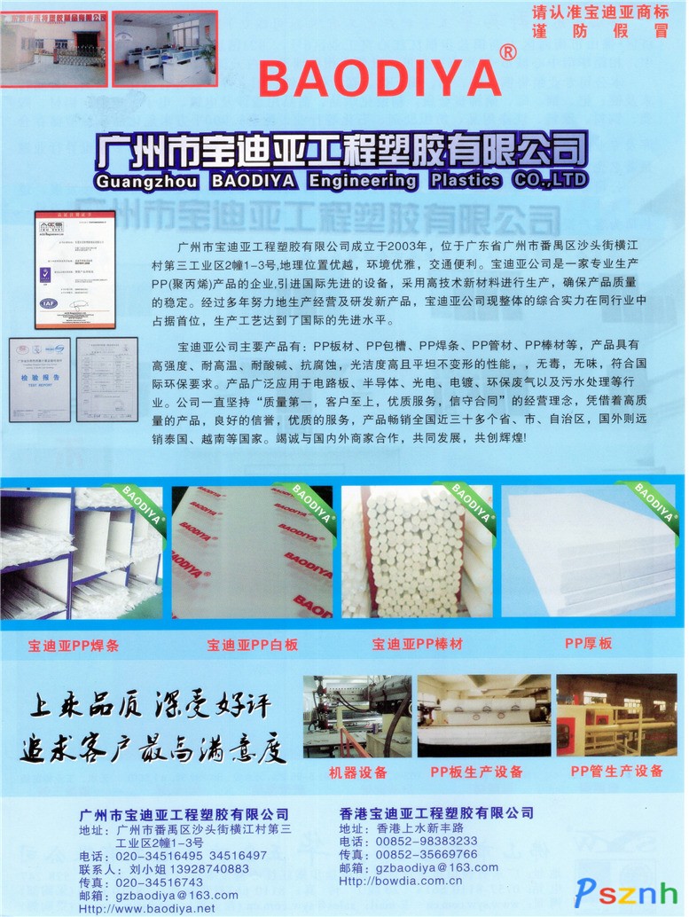 | 公司名稱: | 廣州市寶迪亞工程塑膠有限公司 | ||