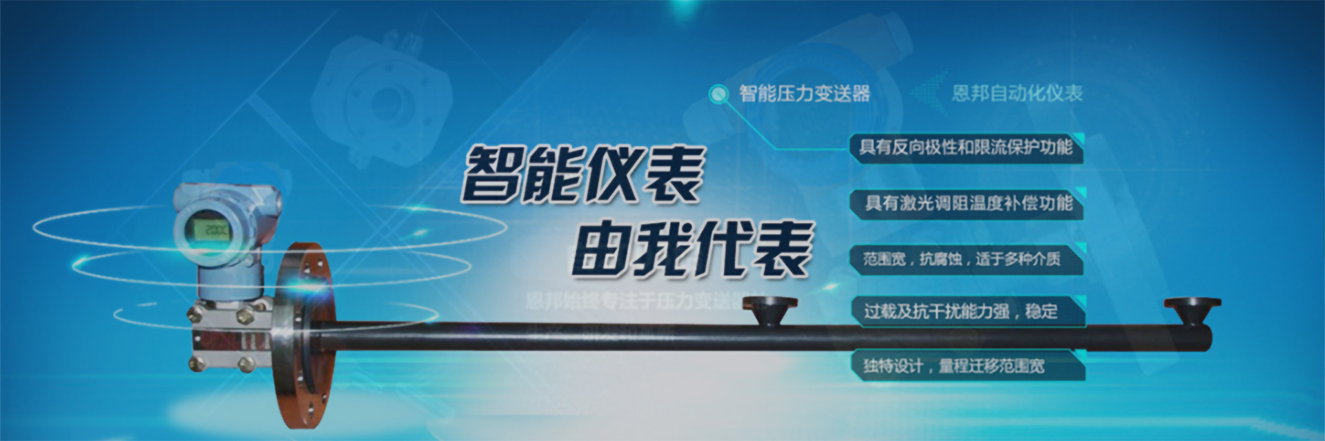 上海恩邦自動化儀表專業研發生產金屬電容式壓力/傳感器、全隔離智能EB系列壓力/差壓變送器的廠商。產品包括壓力/差壓變送器、遠傳壓力/差壓變送器和T型壓力變送器、法蘭式液位變送器等。