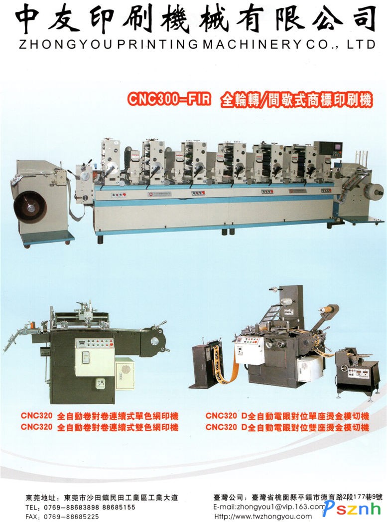 東莞市中友印刷機械有限公司創立于2000年,隸屬于臺灣中友印刷機械有限公司,是專業制造及銷售全自動連續式網版印刷,模切機及燙金機的公司,公司在業界擁有良好的聲譽,與許多大型企業保持長期的合作關系,公司現為進一步擴大公司的業務范圍,提升自身的核心競爭力和品牌競爭力,提出了為客戶私人定制所需要的尺寸規格,讓客戶滿意,放心! 中友公司為臺灣第一家引進日本橫河內制置式電腦系統及進口零件組裝的印刷機械公司,這套CNC的精確度可以說執世界之牛耳,程序設定后操作非常方便,只需要用指撥的方式可設定速度 ,是中國大陸電腦機械式網印機的首位生產廠家,有著良好的商業信譽,市場占有率及排名,均名列前茅。   公司始終堅持最高品質和客戶至上的完美服務,多年來以:“誠信第一,客戶至上,專業生產,優質服務”,的理念和最具優勢的性價比,貼心為客戶提供高品質,高效能的專業產品及完善售前售后的服和技術資源,竭力為客戶創造無限的價值。 每年有日本技術人員來公司教育培訓,十五余年,為實現印刷設備“操作簡單、套印精準、節約成本、提升效益”及適應“多功能、全自動”的市場需求,投入了大量的人力、物力進行技術創新;現已成為能自主研發、專業制造全自動印刷機械設備的廠商。 客戶群遍珠三角,長三角,東北地區,華中華南等地方;公司成立至今,已賣數仟臺機器,我公司與許多大客戶保持長期合作關系,如龍璟、正峰、深圳飛榮達,冠利得,宏升,恒銘達,銀河彩印等。
